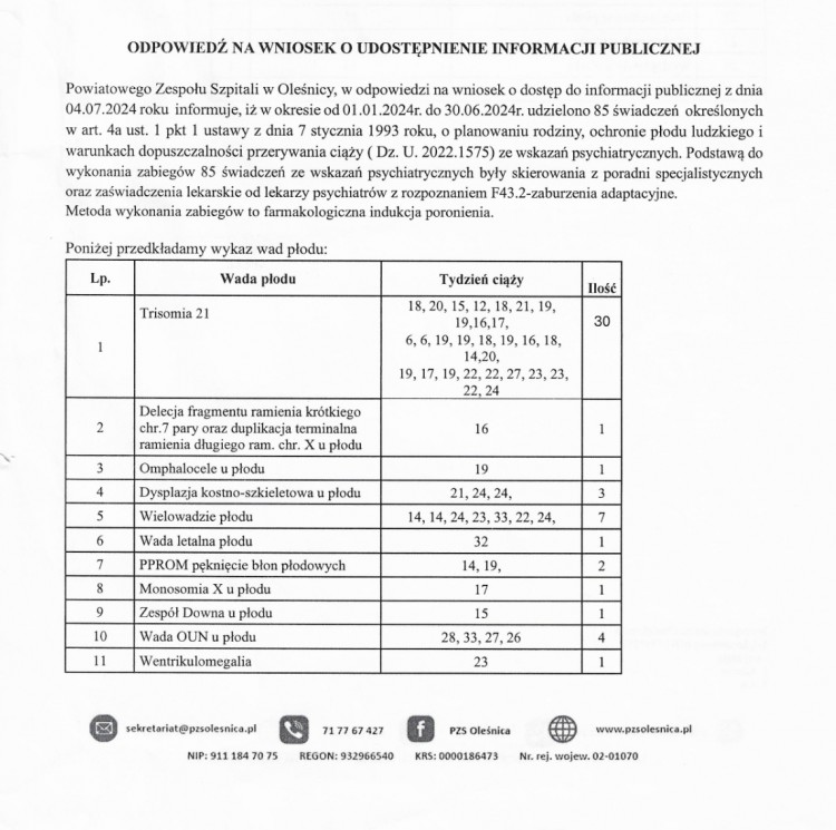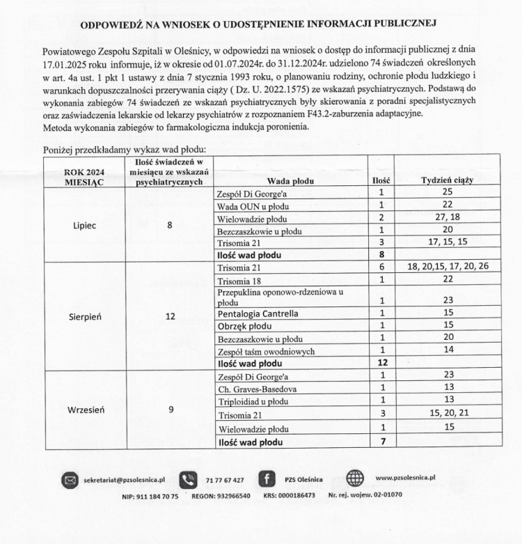 Ile wykonano aborcji w oleśnickim szpitalu w 2024 r.? Opublikowano 17 maja 202528 kwietnia 2025 przez olesnicaslaska Dane są przerażające: zr: