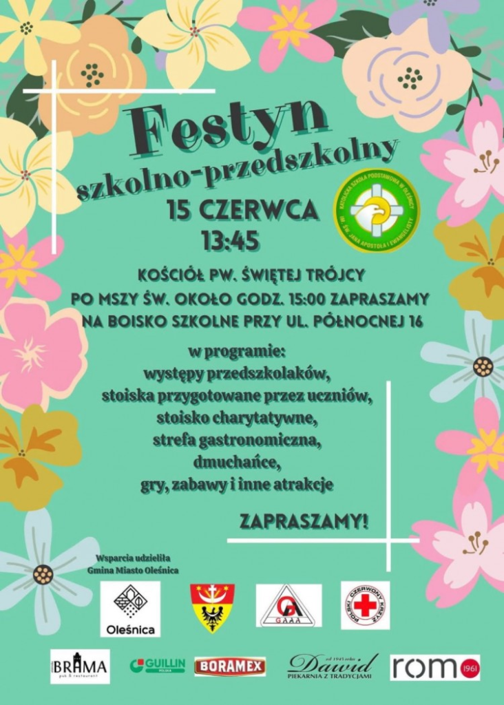 Festyn szkolno-przedszkolny szkoły katolickiej Opublikowano 15 czerwca 2025 przez olesnicaslaska Opis wydarzenia na grafie poniżej: zr: