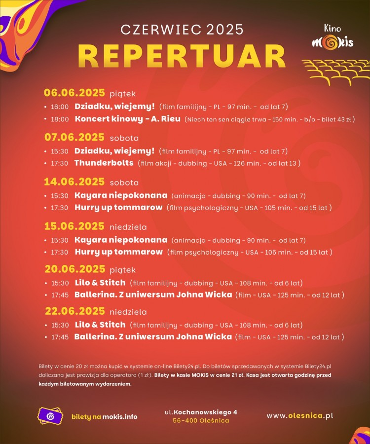 Repertuar MOKiS na czerwiec Opublikowano 5 czerwca 20255 czerwca 2025 przez olesnicaslaska Info na grafie poniżej: