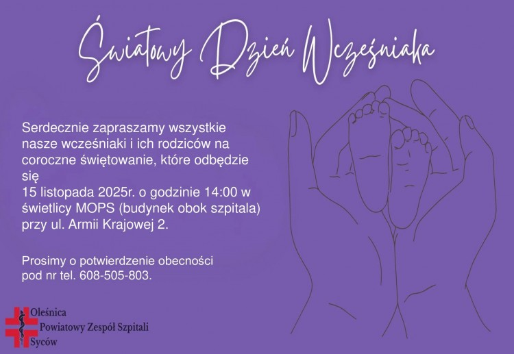 Światowy Dzień Wcześniaka Opublikowano 11 listopada 202516 listopada 2025 przez olesnicaslaska Zaproszenie: